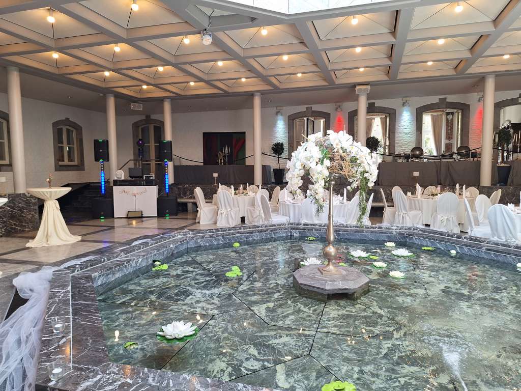 Das Schloss Rahe ist ein wunderschönes, historisches Wasserschloss mitten in einer riesigen Außenanlage. Mit einem atemberaubenden Festsaal, der seinesgleichen sucht: Marmor soweit das Auge reicht! Der Marmorspringbrunnen im Zentrum des Saals mit Tageslicht beleuchtet durch ein großes Deckenatrium machen diesen Saal zu etwas wirklich besonderem.